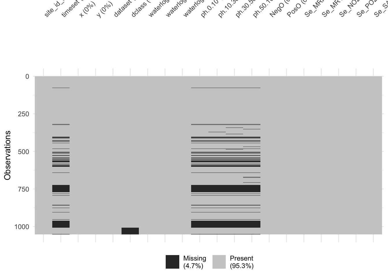 kable()| site_id_unique | timeset | x | y | dataset | dclass | waterlog.30 | waterlog.50 | waterlog.100 | ph.0.10 | ph.10.30 | ph.30.50 | ph.50.100 | NegO | PosO | Se_MRRTF2m | Se_MRVBF2m | Se_NO2m_r500 | Se_PO2m_r500 | Se_SAR2m | Se_SCA2m | Se_TWI2m | Se_TWI2m_s15 | Se_TWI2m_s60 | Se_alti2m_std_50c | Se_conv2m | Se_curv25m | Se_curv2m | Se_curv2m_fmean_50c | Se_curv2m_fmean_5c | Se_curv2m_s60 | Se_curv2m_std_50c | Se_curv2m_std_5c | Se_curv50m | Se_curv6m | Se_curvplan25m | Se_curvplan2m | Se_curvplan2m_fmean_50c | Se_curvplan2m_fmean_5c | Se_curvplan2m_s60 | Se_curvplan2m_s7 | Se_curvplan2m_std_50c | Se_curvplan2m_std_5c | Se_curvplan50m | Se_curvprof25m | Se_curvprof2m | Se_curvprof2m_fmean_50c | Se_curvprof2m_fmean_5c | Se_curvprof2m_s60 | Se_curvprof2m_s7 | Se_curvprof2m_std_50c | Se_curvprof2m_std_5c | Se_curvprof50m | Se_diss2m_50c | Se_diss2m_5c | Se_e_aspect25m | Se_e_aspect2m | Se_e_aspect2m_5c | Se_e_aspect50m | Se_n_aspect2m | Se_n_aspect2m_50c | Se_n_aspect2m_5c | Se_n_aspect50m | Se_n_aspect6m | Se_rough2m_10c | Se_rough2m_5c | Se_rough2m_rect3c | Se_slope2m | Se_slope2m_fmean_50c | Se_slope2m_fmean_5c | Se_slope2m_s60 | Se_slope2m_s7 | Se_slope2m_std_50c | Se_slope2m_std_5c | Se_slope50m | Se_slope6m | Se_toposcale2m_r3_r50_i10s | Se_tpi_2m_50c | Se_tpi_2m_5c | Se_tri2m_altern_3c | Se_tsc10_2m | Se_vrm2m | Se_vrm2m_r10c | be_gwn25_hdist | be_gwn25_vdist | cindx10_25 | cindx50_25 | geo500h1id | geo500h3id | lgm | lsf | mrrtf25 | mrvbf25 | mt_gh_y | mt_rr_y | mt_td_y | mt_tt_y | mt_ttvar | protindx | terrTextur | tsc25_18 | tsc25_40 | vdcn25 | vszone |