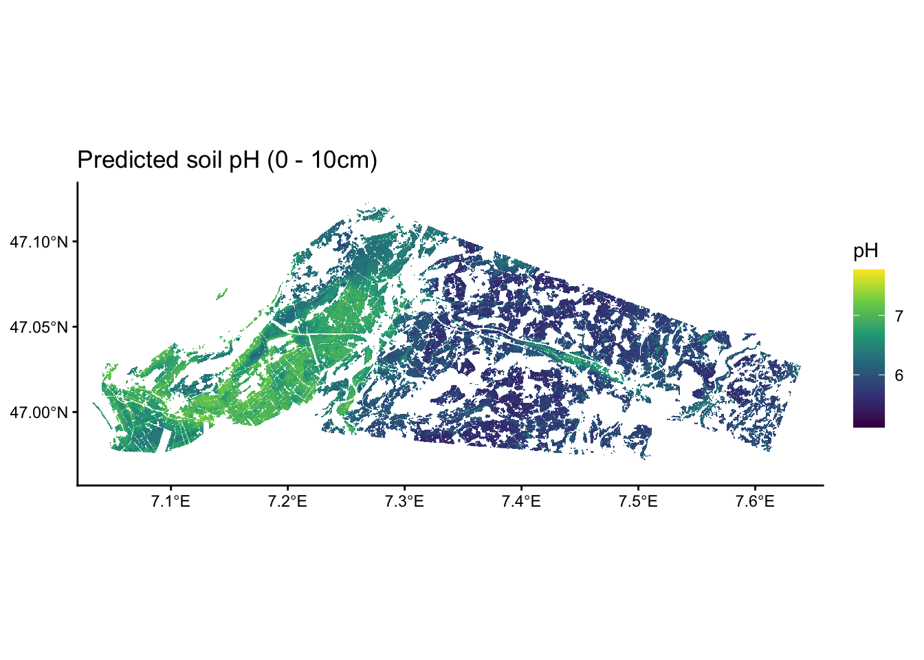labs(title = "Predicted soil pH (0 - 10cm)")